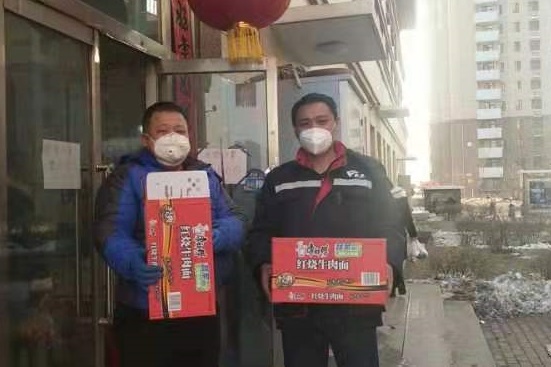 康居家園公租房好心住戶,第一時(shí)間把2箱84消毒液、100個(gè)口罩送到了項(xiàng)目經(jīng)理手中,便利店工作人員送來(lái)了方便面。祥和苑公租房不愿留下姓名的業(yè)主把方便面、牛奶、礦泉水放到了秩序維護(hù)部?;菪略饭夥恐驹刚邚堖M(jìn)軍捐贈(zèng)了25千克消毒液、20雙勞保手套。兄弟單位金橋熱網(wǎng)分公司為物業(yè)工作人員提供了護(hù)目鏡。