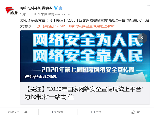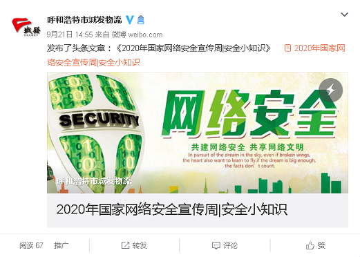 9月14日至20日,根據(jù)城發(fā)公司2020年國(guó)家網(wǎng)絡(luò)安全宣傳周實(shí)施方案要求,城發(fā)物流公司組織全體黨員干部職工積極開展2020年國(guó)家網(wǎng)絡(luò)安全宣傳周系列活動(dòng)。