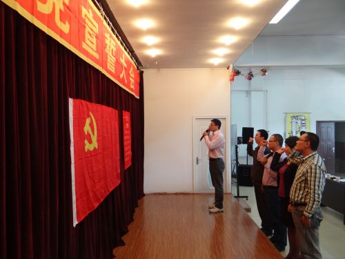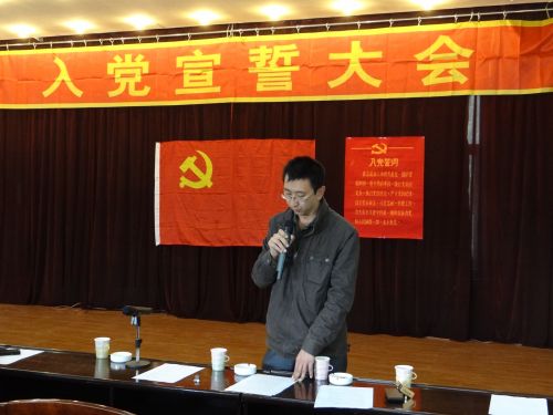 會(huì)場(chǎng)肅穆莊嚴(yán),主席臺(tái)正中懸掛著中國(guó)共產(chǎn)黨黨旗。在雄壯的《國(guó)際歌》聲中,儀式拉開(kāi)了序幕,四名預(yù)備黨員在黨小組長(zhǎng)的帶領(lǐng)下,緊握右拳,面對(duì)黨旗莊嚴(yán)的進(jìn)行了宣誓,表達(dá)了為共產(chǎn)主義事業(yè)奮斗終生的決心。儀式結(jié)束后,預(yù)備黨員代表張學(xué)文進(jìn)行了發(fā)言,表達(dá)了能成為中國(guó)共產(chǎn)黨一員的激動(dòng)和光榮,同時(shí)也深切感受到了責(zé)任感和使命感,今后要時(shí)刻以黨員標(biāo)準(zhǔn)嚴(yán)格要求,努力工作,堅(jiān)定信念,為黨的事業(yè)努力奮斗,再立新功。